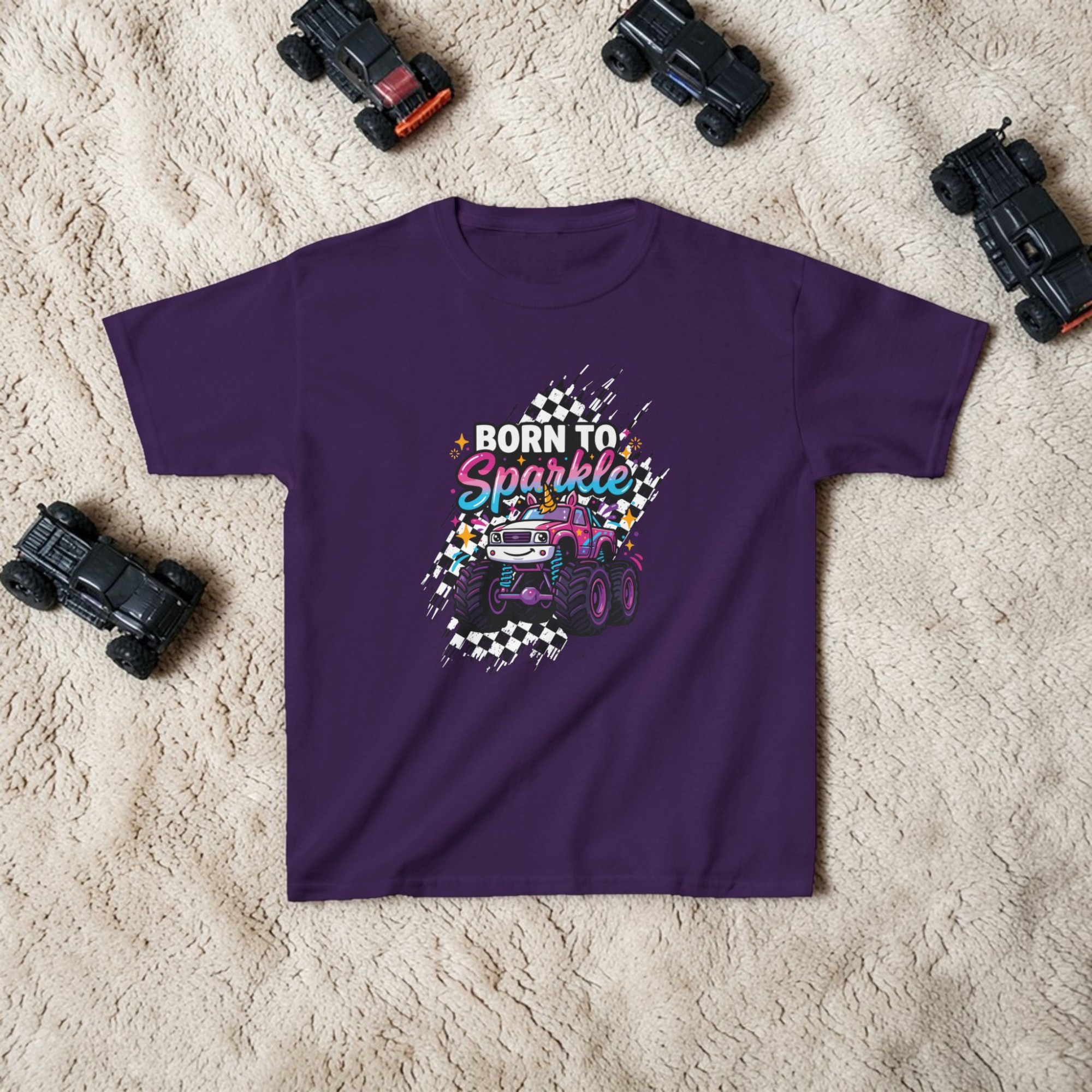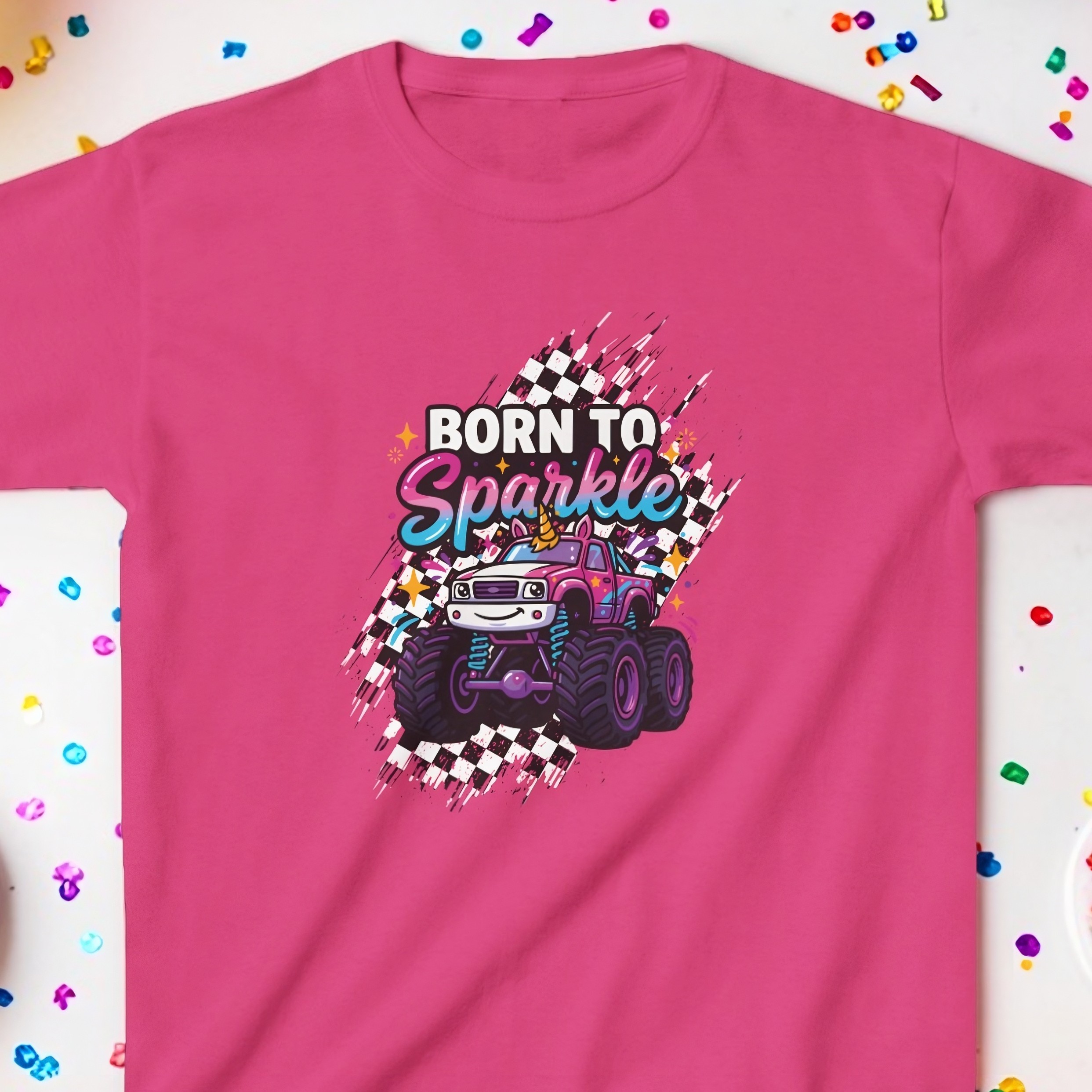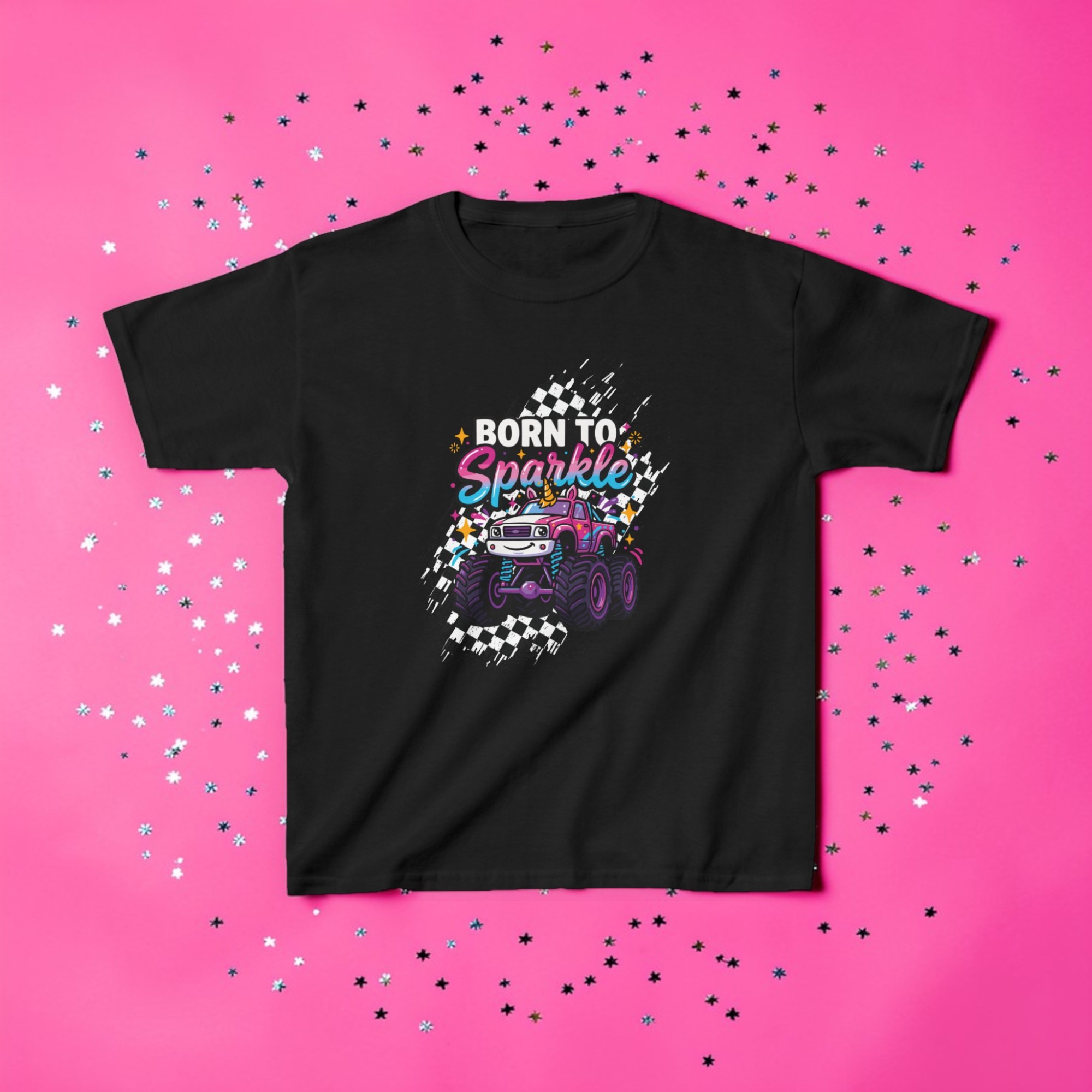 / Born to Sparkle Unicorn Monster Truck Kids Shirt